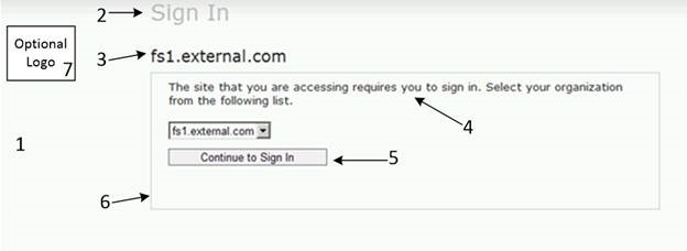 3. STS Title. The title you see here comes from the AD FS Federation Service name you define on the AD FS Properties. The same name you see in the drop down list when you need to select your target IdP. The placement code for STS Title is controlled in MasterPage.master and via style sheet. I removed STS Title from the final page. I had to do this by introducing a new code in the style sheet and replacing the class definition in the MasterPage.master with new style that hides it.